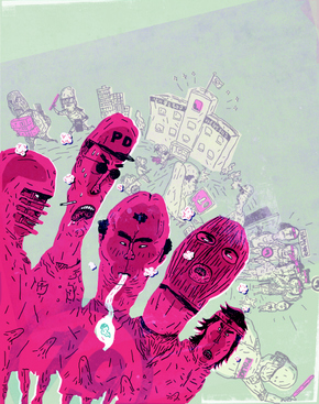 PD는 구청에 조금 늦게 도착했다. 그가 도착해서 가장 먼저 본 것은 경찰이었다. 경찰들이 시민들의 구청 진입을 막고 있었다. 시민들 사이에서 불만이 터져나왔다. 또 다른 한쪽에선 깃발을 지키려는 쪽과 압수하려는 쪽이 실랑이를 벌였다.