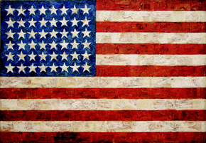 신문을 오려 붙인 캔버스 위에 납화법으로 그린 재스퍼 존스의 <깃발>.