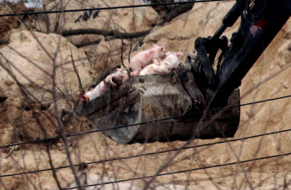 무려 150만 마리다. 그런데 지금 마감하는 <한겨레21> 845호가 독자에게 도착할 시점에는 앞의 문장은 구문이 돼버릴지도 모르겠다. 잡지가 유통돼 누군가의 손에 쥐어지는 순간마다 그렁그렁한 눈을 한 소와 영문 모를 돼지들은 계속 차가운 땅속에 묻히고 있을 테니까. 150만이란 도대체 얼마만큼인가. 계산을 해봤다. 거칠게 셈을 해보니 살처분된 소와 돼지를 한 마리씩 줄 세운다 치면 서울∼부산 450km를 왕복하고, 한 번 더 부산까지 일렬종대하고도 넘칠 수다.