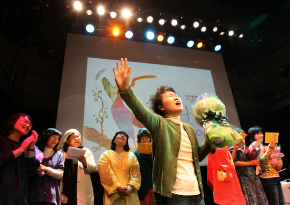아줌마 커뮤니티 ‘줌마네’ 회원들이 2009년 연극 <내 나이 마흔에는>을 무대에 올린 모습. 아줌마들의 이야기는 인터넷 게시판, 책, 연극 등을 통해 전해진다.한겨레 이정아 기자 leej@hani.co.kr
