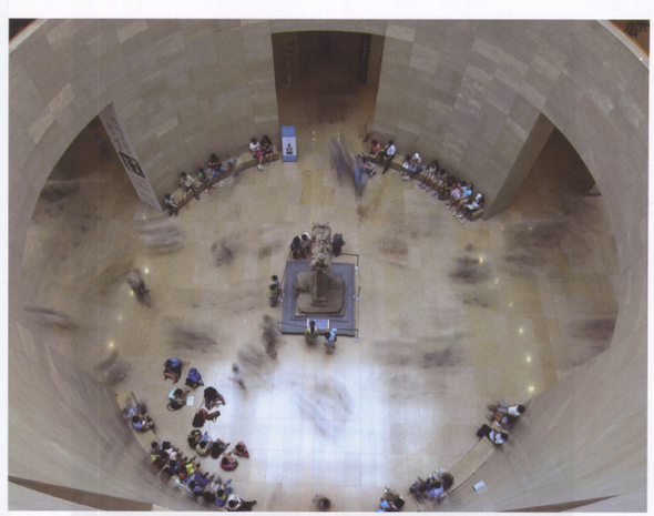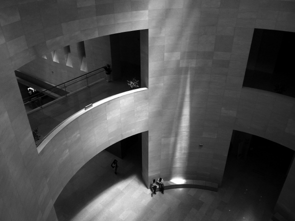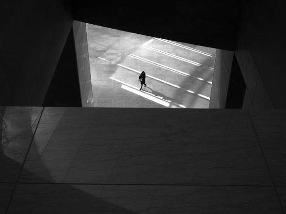 서울 용산에 있는 국립중앙박물관. 상설전시관을 들어서서 복도를 따라 죽 걸어간다. 중간에 있는 계단을 걸어 3층까지 올라간다. 원형으로 된 공간이 내려다보인다. 들고 온 똑딱이 카메라를 꺼낸다. 카메라는 손에 감춰질 정도로 작다. 카메라를 아래로 향하게 하고 아래를 바라본다. MP3를 듣는다. 기다리기 위해서다. 기다린다. 무언가 딱 맞는, 미리 그린 이미지가 있는 것은 아니다. 이윽고 빛이 내리는 건물 벽 저쪽에서 사람이 한 명 들어선다. 셔터를 누른다. “기다리면 반드시 온다. 나중이냐 금방이냐의 차이긴 하지만. 기다리면 심심한 줄을 모른다. 그 순간이 언제 올지 모르니까.”