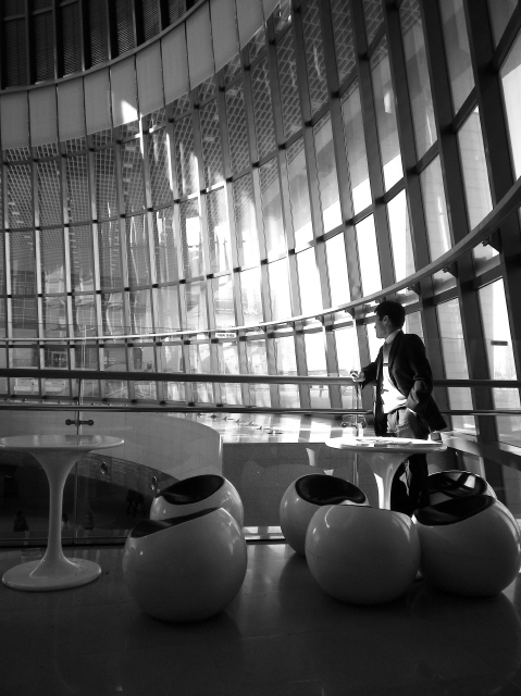 작은 원형 로비를 찍은 뒤 커피숍으로 이동해서 앉는다. 거기서 내려다보이는 곳은 오후 4시가 되면 블라인드가 내려오고 원형 현관 로비에 뜨문뜨문 빛이 내리쪼Red인다. 그 순간에 안씨가 ‘빛의 철길’이라 부르는 길이 만들어진다. 3층에서 이 현관 로비를 내려다보며 사진을 많이 찍었다. 빛의 철길을 천진스럽게 지나가는 아이와 기쁜 듯이 지나가는 아이, 그 길을 따라가듯이 걸어가는 남자가 화면에 담겼다. 빛나는 걸작 사진들이다. 그 뒤 로비에는 안내 데스크가 생기면서 철길이 끊겼다. “아쉽기도 했지만 이제 그런 사진은 나한테만 남았구나라는 생각도 들더라고요.”