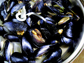 인터넷에서 조리법을 참고했다. 조리법은 간단했다. 홍합은 수세미를 이용해 껍데기를 깨끗이 씻는다 → 양파는 채 썰고 샐러리는 4㎝ 길이로 썬다 → 냄비에 버터를 두르고 홍합을 넣는다 → 화이트 와인을 붓고 양파와 샐러리를 넣어 한소끔 끓인다 → 소금과 후춧가루로 간하고 불에서 내린다.(다음 미즈쿡 참조) 단, 화이트 와인은 단맛이 적고 신맛이 높은 요리용을 넣는 게 좋다.