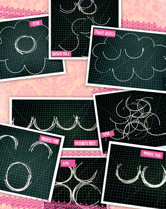 미국에 유학 중인 ‘테라네’(34)는 몇 년 전 이런 일을 감행했다. 와이어 예술도 했다. 빼낸 와이어로 웃는 눈을 만들기도 하고 달리는 모양을 만들었다. 가장 만족스러운 것은 ‘짝짝이 가슴’. 정말 ‘형상기억합금’이긴 했던 건가.