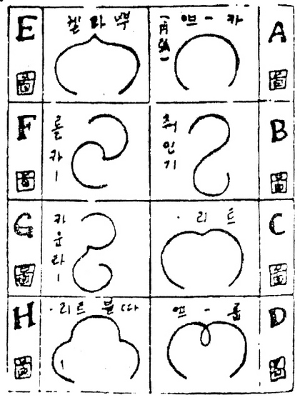 1937년 잡지 <여성>에서 제공한 피겨스케이팅의 여덟 가지 기본 도형.
