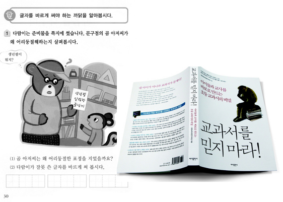 초등학교 1학년 1학기 <쓰기> 3단원에서는 받아쓰기를 배운다. 글자의 소리와 모양을 배우고 익힌 지 얼마 되지도 않은 아이들에게 틀린 글자를 찾아 고쳐쓰라 한다.