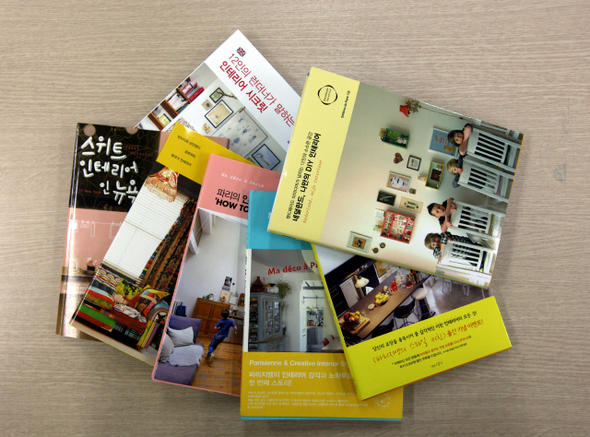 최근 다양하게 출간되는 인테리어 책은 이러한 놀이문화를 그대로 보여준다. 예전의 인테리어 서적이 ‘커튼 만들기’나 ‘수납장 짜기’ 등 일상생활의 인테리어 방법과 자세한 설명에 초점을 맞췄다면 요즘 출간되는 책은 설명보다 사진 이미지가 앞선다. 유럽의 라이프 스타일에 관한 책을 주로 만들어온 일본 출판사 ‘에디션 드 파리’(Editions de Paris)의 책이 대표적이다. 국내 출판사를 통해 꾸준히 번역서가 나오고 있는 ‘에디션 드 파리’ 시리즈는 파리·런던·네덜란드·북유럽편 등이 출간됐고, 베를린편 출간을 앞두고 있다. 책은 주로 해당 국가나 도시에 사는 사람들의 집 구석구석을 사진으로 보여주고 그들이 추구하는 인테리어나 라이프 스타일을 짧게 소개한다. 눈이 즐겁다.