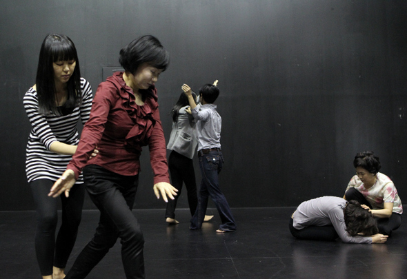 커뮤니티 댄스 워크숍 '엄마와 딸'에 참가한 안인용 기자 모녀가 워크숍에 참여하고 있다.