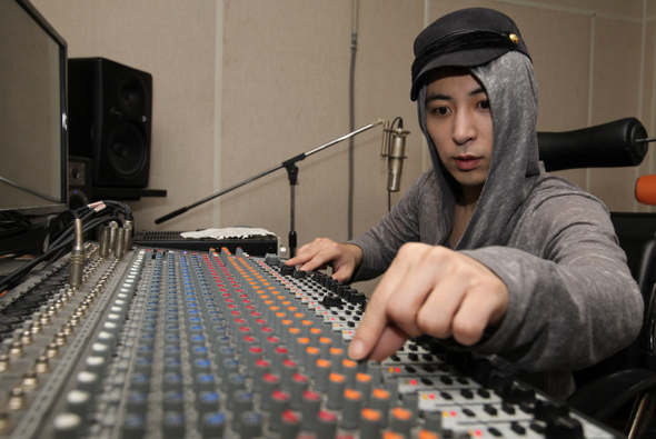 뮤지션 이시우씨가 지난 5월4일 오후 서울 서초구 양재동 녹음실에서 자신의 신곡을 녹음하고 있다. 그는 ‘음악 해서 떼돈 벌고 싶다’ ‘많이 팔리는 음악 해야지’ 하는 생각을 한 적이 없다고 했다.