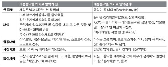 뮤지선 이시우씨가 대중음악을 하기로 맘먹기 전과 후