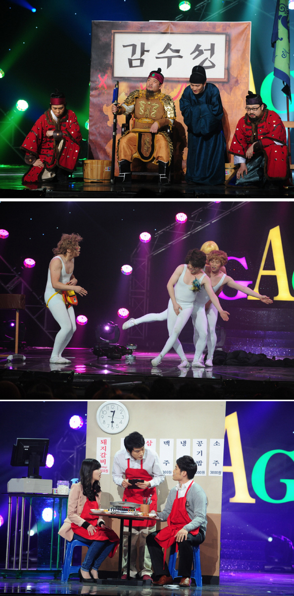 개그콘서트의 한 장면. 사진 위에서부터 '감수성', '발레리NO', '생활의 발견'. 한국방송 제공