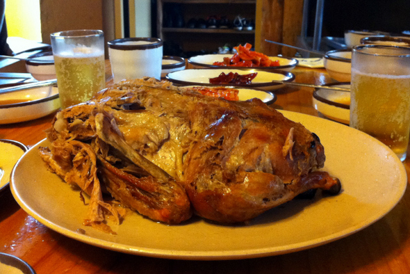 피할 수 없는 회동. 난 도심을 벗어나 사람이 없는 곳으로 와잎과 심비홍 식구를 인도했다. 민폐를 줄여보자는 애민의식 되겠다. 그래서 찾은 곳은 경기 의왕시 백운호수 부근에 있는 유명 오리요릿집 ‘온누리 장작구이’. 오리 진흙구이와 맥주를 시켰다. 잡곡을 넣은 영양밥으로 속을 채운 오리를 진흙에 구워 내오는 보양식이었다. 요리가 나왔고 둘은 죽마고우라도 만난 듯 찧고 까불었다. 고기는 담백했고, 영양밥은 차졌다. 단출한 밑반찬은 맛깔스러웠고, 후식으로 나오는 잔치국수는 맛과 양이 적당했다. 주변을 보니 가족 단위 손님이 주를 이뤘다. 식당 마당에선 숯불에 군고구마를 구워먹을 수도 있어 아이들이 좋아할 만했다. 여자 심비홍과 남자 심비홍은 아주 잘 만나셨고(아주 헤어진 오누이, 쌍비홍이구먼), 제수씨와 난 애들을 보느라 이리저리 뛰어다녔다. 오늘도 주객전도구나. 그날의 술자리는 새벽까지 이어졌다. 오바이트도 좋다, 거실에 똥만 싸지 말아다오. 문의 031-426-9293.