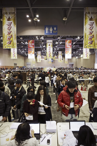 문화방송 <위대한 탄생>은 50개국에서 유튜브 동영상 경연, 한국·미국·일본·중국·타이의 해외 오디션 등을 통해 114개 팀 본선 진출자를 뽑았다. <위대한 탄생> 서류 접수에 몰려든 지원 행렬. 문화방송 제공