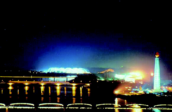 평양은 생산·녹지·상징의 공간으로 계획된 도시다. 오른쪽에 상징의 구조물인 주체사상탑이 보인다. 연합
