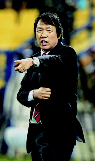 조광래 한국 축구 국가대표팀 감독이 지난 1월11일 카타르 도하 알가라파 스타디움에서 열린 아시안컵 C조 한국 대 바레인 경기에서 선수들에게 전술을 지시하고 있다. 조 감독은 대표선수 차출 등에 대한 기술위원회와 대표팀 감독 사이의 권한관계를 명확히 해야 한다는 견해를 공식적으로 밝혔다. 연합