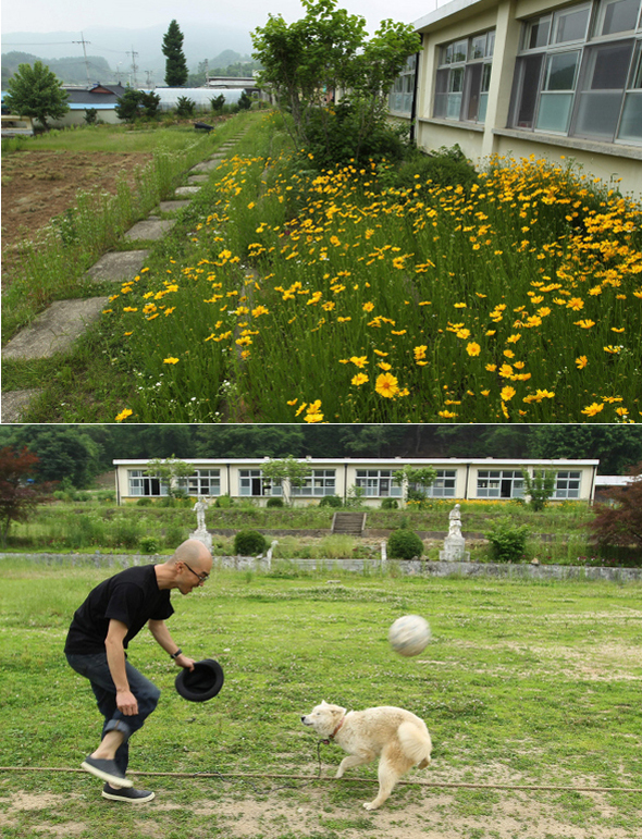 6월9일 충북 제천시 수산면 대전리의 날씨는 적당히 선선했다. 초가을 날씨 정도의 습도와 온도가 폐교에서 새만화책 작업실로 변한 옛 대전초등학교 건물을 감쌌다. 김 대표는 지난해 8월 서울 양재동에서 이곳으로 터를 옮겼다. 폐교를 임대해 작업실과 출판사 사무실로 개조했다. 아이 키보다 웃자란 운동장 풀을 깎는 데 몇 주일을 바쳤다. 풀을 없애자 색 바랜 책 읽는 어린이 석상이 모습을 드러냈다. 김 대표 숙소, 새만화책 사무실 및 작업실이 그렇게 태어났다. 교장 사택은 쓸고 닦아 ‘게스트하우스’로 고쳤다. 폐교 임대와 정착에 ‘예술과 마을 네트워크’(예마네)의 도움을 받았다. 예마네는 문화예술가들과 지역 마을의 교류를 확대하자는 취지로 만들어진 단체다. 이명박 정부의 ‘표적 해임’ 논란을 불렀던 김정헌 전 한국문화예술위원회 위원장이 대표다. 적어도 지금까지는 예마네의 설립 취지가 어느 정도 구현된 것으로 보인다. 김대중 대표는 50가구 120여 명이 사는 마을에서 ‘교사님’으로 불린다. 지난해 농한기에 주민을 상대로 한글·영어·미술 강좌를 시작했다. 마을 소식지 <뒤싯골 지나 방아다리 건너>를 펴내 필부들의 사연을 담아냈다. ‘마을만이 희망이다’라는 예마네의 철학이 소식지 발간에 깔려 있다.
