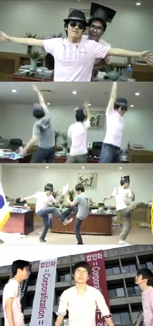 하지만 2011년 초여름 서울대생들의 농성에선 과거 그들의 선배들에게서 풍기던 ‘참을 수 없는 무거움’은 없었다. 학생들은 농성 기간에 그룹 UV의 <이태원 프리덤>을 패러디한 뮤직비디오 ‘총장실 프리덤’을 제작해 유튜브에 올렸다. 학생 6명이 이틀 동안 농성장과 도서관 등에서 촬영한 뒤 노래방 녹음시설을 이용해 완성한 동영상은 삽시간에 인터넷 포털 사이트에서 ‘펌질’되며 법인화 반대투쟁에 대한 관심을 환기해나갔다. 제작진은 “노래패 활동을 하는 학생으로서 대학본부 점거 중에 뭔가 나름의 역할을 해야 하는데 뭘 할까 고민하다가 뮤직비디오를 만들게 됐다”고 했다.