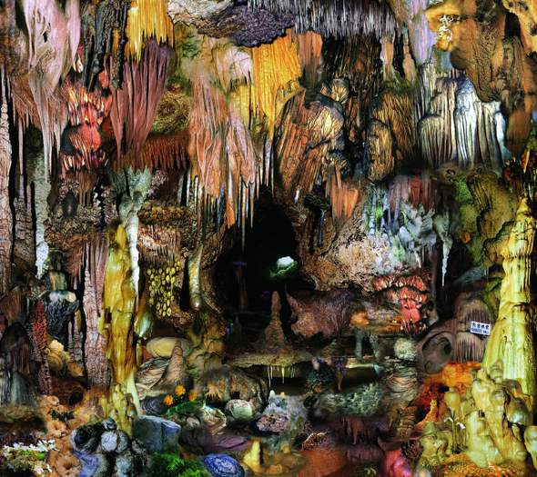 입간판 앞면의 사진은, 천연기념물 안내 웹페이지에서 남한의 지질·광물 섹션에 게재된 사진 이미지를 다운로드받아 일일이 짜깁기해서 가상의 동굴을 꾸며낸 결과다. 부분을 차용할 때, 작가는 특별한 사연이 있는 종유석을 선별하는 등 ‘원료’의 선택에 심혈을 기울였다. 그래서인지, 야릇한 풍광의 합성 이미지를 바라보자면, 음험한 광기가 느껴지는 듯하다.