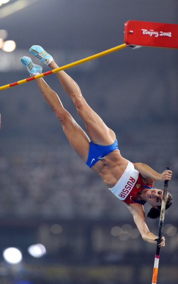 옐레나 이신바예바는 28번째 세계신기록을 세울 수 있을까. 이신바예바가 2008년 8월18일 중국 베이징올림픽 주경기장 니야오챠오에서 열린 육상 여자 장대높이뛰기 때 바를 넘고 있다. 이날 그는 5.05m로 세계신기록을 수립했다. 올림픽사진공동취재단