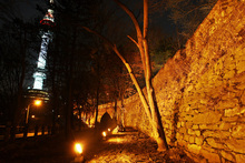 지난 11일 서울 중구 장충동 국립극장 앞에서 남산 팔각정을 거쳐 남산도서관에 이르는 1639m에 야간 경관 조명이 설치되면서, 남산의 조선시대 성곽의 윤곽이 뚜렷하게 드러나고 있다. 김명진 기자 littleprince@hani.co.kr