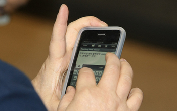 트위터를 하고 있는 심상정 전 진보신당 대표의 손. <한겨레> 이종근 기자