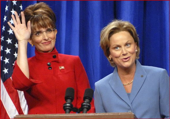 정치인의 캐릭터를 서슴없이 들먹이고 웃음거리로 삼는 은 진보지향적인 당파적 코미디를 구사한다. 극우 성향의 정치인 세라 페일린은 이 프로그램의 단골 웃음거리다. 2008년 코미디언 티나 페이는 페일린처럼 분장하고 나와 “유엔에 너무 많은 외국인이 살고 있어 낙심했다”거나 “부시 독트린은 영화 제목이 아니더라”는 등의 대사로 페일린의 경솔한 언행을 풍자해 큰 인기를 얻었다. 페일린이 대통령이 된 뒤 세계에 종말이 찾아온다는 가상 드라마나 동성애자를 탄압하는 마무드 아마디네자드 이란 대통령이 실은 게이라는 뮤직비디오를 방영하는 등 강도 높은 풍자도 서슴지 않는다. 정치인이 풍자를 피해가는 가장 좋은 방법은 함께 웃는 것이다. 2008년 10월 세라 페일린은 티나 페이와 나란히 에 출연하기도 했다.