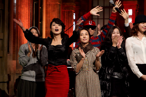의 정신이다. 그래서 대중은 열광한다. 상원의원 시절의 오바마 대통령은 ‘오바마 가면’을 쓰고 출연했다. 부적절한 언행으로 구설이 끊이지 않는, 그래서 의 단골 놀림감인 공화당의 세라 페일린도 직접 얼굴을 비췄다. 한국에서도 가능할까. ‘내곡동 테니스 동호회’ 깃발을 든 이명박 대통령이 4대강변에서 미국산 쇠고기를 구워 먹으며 스스로 웃음거리가 되고, 박근혜 의원이 수첩을 들고 아버지 박정희 전 대통령을 ‘디스’하는 장면. 상상만 해도 염통이 쫄깃해진다. 요즘 지지율 때문에 고민이 많으실 텐데, 그런 파격이 가능하다면 싸늘해진 유권자들 마음도 조금은 누그러들지 않을지. 장 감독은 “정치인이든 아니든, 나오고 싶은 사람만 섭외한다는 철칙이 있다”고 했다. “자신을 다 던져야 하기 때문이다. 이 형성하고 있는 쇼의 중의성(重義性)이란 각계의 슈퍼스타들이 자신을 사랑해주는 사람들 앞에서 스스로를 던져 미국의 주말을 책임진다는 공공적 책임의식에 있다. 단순히 영화나 앨범 홍보 차원에서 출연하는 예능 프로그램이 아니다. 정치인도 마찬가지다.” 김주혁과 공형진이 그렇게 자신의 ‘모든 것’을 던졌다. ‘배우’로서의 아우라를 포기하고 만인에게 웃음을 선사하는 딴따라로, 그렇게 ‘모양 빠지는 길’을 택했다. 시대를 위로하는 그들 나름의 방식이랄까.