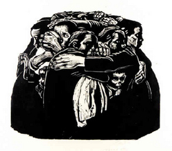 미술에서 목판화는 늘 새로운 세상을 꿈꾸는 이들의 중요한 무기로 애용돼왔다. 가장 선동적이자 가장 진보적인 장르가 곧 목판화였던 것이다. 목판화 특유의 흑백 대비가 현실을 가장 극적으로 강조하면서도 단순하게 그리기에 가장 효과적이었기 때문이다. 그 대표적인 작가가 선구적 여성 미술가이자 민중미술가로 미술사에 큰 족적을 남긴 케테 콜비츠(1867~1945)다. 콜비츠의 저항적이고 비판적인 목판화는 현대 중국의 사상적 아버지 루쉰에게 특히 큰 영향을 끼쳤다. 인민들이 주인이 되는 새로운 중국을 만드는 가장 중요한 투쟁 방법이자 매체가 목판화라고 여겼던 루쉰은 목판화를 널리 전파하는 데 앞장섰다. 우리나라에서 과거 군사독재 시절 오윤을 비롯한 여러 민중미술 화가들이 목판화 그림을 그렸던 것도 이런 목판화의 문화적 전통과 이어진다.