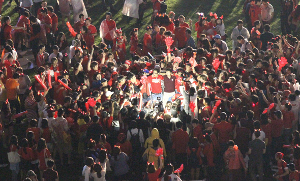 남아공월드컵 한국-그리스전 거리응원을 하고 있는 붉은악마들. 사진공동취재단