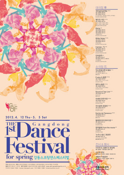 야외에서 열리는 24일간의 춤의 향연, ‘강동스프링댄스페스티벌’ 서울 동쪽 끝자락이 봄을 여는 춤으로 들썩인다. 4월12일부터 ‘춤춰라, 강동!’이라는 슬로건을 내걸고 열리는 제1회 강동스프링댄스페스티벌(GDF)은 새로 시작한 커다란 춤 축제다. 4월12~13일 강동아트센터에서 열리는 개막 공연에선 태권무·발레·현대무용이 교집합을 시도한다. 축제 기간 24일 동안 대극장 한강과 소극장 드림 및 야외 공간에서 300여 명의 무용수가 출연하는 총 28회의 공연이 펼쳐진다. 스타 발레리노 김용걸, 국수호·김매자 명인, 경기도립무용단, 서울발레시어터 등 출연진과 출연 단체가 화려한 것이 특징이다. 문의 02-440-0519.
