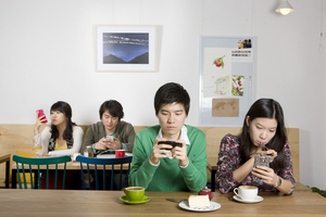 <한겨레> 사진부 김정효 사진전 ‘스마트 릴레이션쉽-비동기식’ 사랑은 둘이 같은 곳을 쳐다보는 것이라고 했지만 김정효의 사진 속 연인들은 둘이 각자 자신의 스마트폰만 쳐다보고 있다. <한겨레> 사진부 기자로 일하는 사진가 김정효가 포착한 스마트한 연인들의 표정이다. 함께 있지만 함께 있지 않은 것과 다를 바 없는 스마트폰 사용자들의 표정에서 문득 우리 얼굴을 발견하게 된다. 네트워크에 집착하지만 정작 옆사람과는 불통하는 시대의 표정이기도 하다. 사진전 ‘스마트 릴레이션쉽-비동기식’은 4월10~15일 서울 종로 류가헌에서 열린다. 문의 02-720-2010.