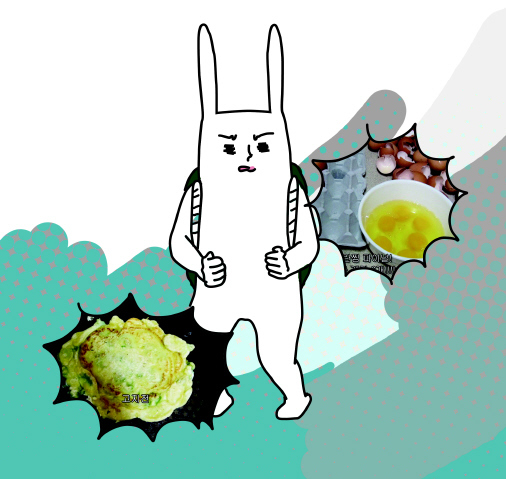 요리 가이드가 아니라면 이것을 만화라 불러야 할까. 정다정 작가의 블로그 글이 웹툰 조회 수 최고 기록을 넘어서자 만화가들은 충격을 받았다는 소문이다. <역전! 야매요리>는 매주 한 가지 요리에 도전하는 만화다. 설정은 그렇지만 요리는 곧잘 산으로 가고, 가족들은 그의 요리를 먹지 않으려고 자리를 피한다. 읽는 사람도 레시피의 정확성을 따지기보다는 그 안에서 끓고 있는 웃음 코드에 녹아들기 바쁘다. 웹툰 연재를 시작하며 일본 만화 <명탐정 우사미>의 주인공 ‘눈빛 더러운 토끼’가 주인공으로 그려지지만 여전히 만화를 끌고 가는 큰 줄기는 요리 사진에 곁들인 자막 글들이다. “세상에서 가장 불쌍한 거지는? …설거지.” 잉여스러움이 물씬 풍기는 그의 부엌과 속사포 같은 말발에 반한 사람들이 모인 팬카페도 만들어졌다. 첫눈에 사랑을 고백하는 댓글들을 보면, 팬심마저 기존 만화작가들을 향한 것과는 좀 다른 듯하다. 요리도, 만화 그리는 기술도, 기성 작가엔 못 미칠지 몰라도 잉여로움을 먹음직스럽게 구워내는 한 동료에 대한 환호와 지지처럼 보인다. ‘야매요리’에 반한 아이돌 그룹 샤이니의 종현이 ‘트친’(트위터 친구) 맺자고 달려와도 팬들은 샘내기는커녕 기뻐했지만, 정 작가가 부산에 있는 외국어고등학교를 다니다가 미국에서 고등학교를 마친 사실이 알려지자 실망하는 댓글이 줄을 이었다. “저도 그 댓글 많이 봤어요. 잉여인 줄 알았는데 유학도 갔다 왔느냐는 댓글. 그런데 허울만 좋은 잉여예요.”