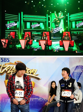 오디션 프로그램은 전성시대를 지나 ‘중고 신인’들의 재도전이라는 ‘시즌2’에 들어선 인상이다. 언젠가 꿈은 반드시 이루어진다는 판타지는 더욱 강화된다. 재도전자들이 화제가 된 채널 엠넷의 <보이스 코리아>(위)와 SBS <기적의 오디션>.