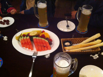 일요일 오후, 아들 녀석의 여자친구인 승주네 부모가 전활 했다. 아이들을 위해 모이자는 것. 부모를 위한 게 아니고? 그나저나 하루라도 못 보면 전화 통화라도 꼭 하고야 마는 아들 녀석과 승주는 믿거나 말거나 장래 결혼을 약속한 사이. 부모들이 음주를 하는 사이 소주잔을 들고 엄마·아빠 놀이를 자주 하다 그리 되었다는 슬픈 사연이 있다. 아무튼 미래의 사돈 식구와 우린 서초동에서 양과 곱창 등으로 양껏 1차 상견례를 하고 옥토버훼스트 서초점에 갔다. 하우스 맥주를 국내에 처음 소개한 옥토버훼스트는 정통 맥주 본연의 맛을 느낄 수 있는 곳. 직접 만든 맥주인 탓에 시중의 생맥보다 도수가 높다. 흑맥주인 둥클래스부터 맥주의 본고장 체코의 맛을 자랑하는 필스너 우르켈 등 평상시엔 접하기 힘든 깊은 맛의 생맥에 와잎은 눈이 반짝였다. 우리는 가볍게 바인스맥주 4잔과 과일 안주를 시켰다. 메인 안주가 나오기 전에 무료로 제공되는 막대기빵을 크림소스에 찍어먹는 맛은, 여전히 고소했다. 승주와 아들 녀석에게 스마트폰을 쥐어주고 해방감에 홀가분한 몰지각한 두 부부는 짠을 연발했다. 얘들아~ 미안하다~ 사랑한다.