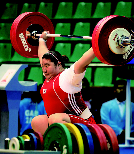 2004년 아테네 올림픽 은메달, 2008년 베이징 금메달. 이번 올림픽에선 장미란의 메달 색깔보다 그녀의 도전이 더 의미 있다. 광저우 /김종수 기자 jongsoo@hani.co.kr
