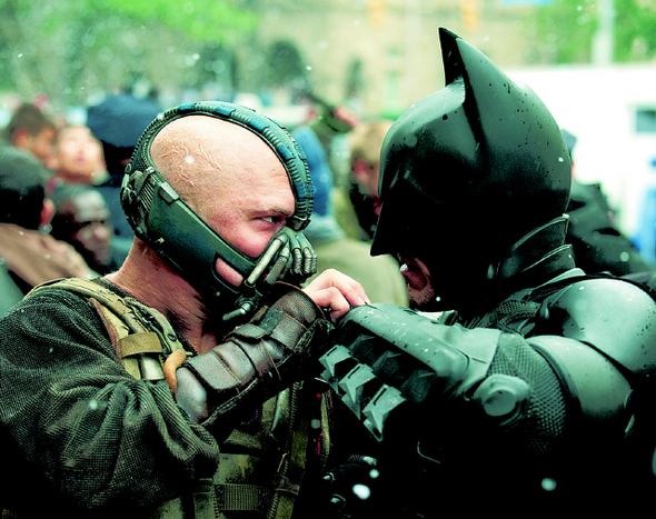 <다크나이트 라이즈>는 슈퍼히어로물이자 슈퍼히어로물이 아니다. <다크나이트>가 사회실험 장면을 비롯해 선악과 정의에 대한 법철학적 질문을 던지는 영화라면, <다크나이트 라이즈>는 무장봉기의 환영을 통해 체제 절멸의 공포를 환기하는 정치영화다.