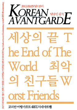 지난 2월 고려대 내에 개관한 예술영화관 KU시네마트랩이 ‘코리안 아방가르드’ 기획전을 연다. ‘코리안 아방가르드’는 상업영화 문법에 얽매이지 않는 독특한 한국 독립영화, 젊은 신진감독들의 독특한 단편을 상영하는 자리로 최재성 감독에 이어 8월5일에는 건축학과를 졸업해 영화감독이 된 남궁선의 작품전을 연다. 이번 기획전에선 넥스트릴영화제 영화인의 선택상을 받은 <세상의 끝>, 2009년 미쟝센단편영화제에 비정성시 부문 최우수상을 받은 작품이자 배우 김수현의 초기 출연작인 <최악의 친구들>, ‘모임별’의 <태평양> 뮤직비디오 등을 상영한다. 문의 02-924-6579.