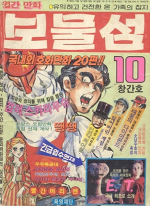1982년 10월 육영재단에서 460여 쪽의 두툼한 만화 전문 월간잡지 <월간 만화 보물섬>(이하 <보물섬>)을 창간했다. 육영재단은 1964년 당시 대통령 부인 육영수가 설립한 재단으로 어린이회관을 운영하는 한편 어린이 잡지 <어깨동무>를 출간했다. 1970년대 <어깨동무>는 <새소년> <소년중앙>과 함께 어린이 잡지 트로이카의 주역이었다. 어린이 잡지는 본지에 기사와 만화, 그리고 별책부록만화로 구성됐다. 당연히 어린 독자들의 관심은 만화, 특히 별책부록을 통해 제공된 불법 일본만화(주로 다시 그린) 등에 쏠려 큰 인기를 얻었다.