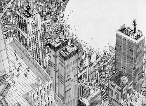 공상과학(SF) 만화의 걸작, 오토모 가쓰히로의 <아키라>. 오토모는 만화 속 배경 하나하나를 일일이 수작업으로 정교하게 그리기로 유명하다. 만화 캡처 화면