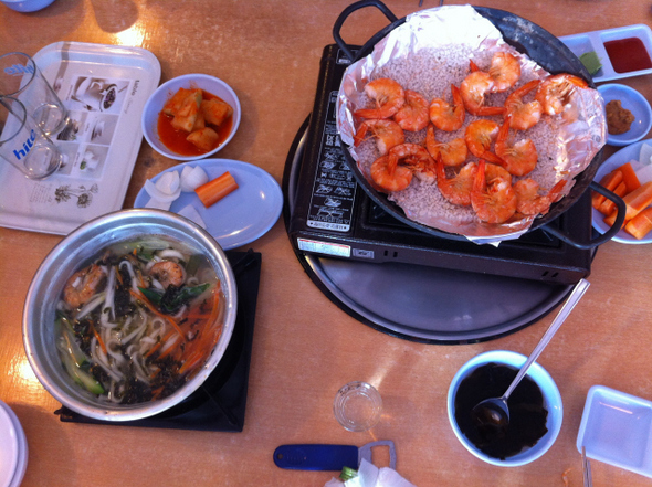 그길로 개 끌려나와 향한 곳은 사당동 총각수산. 선주의 아들이 운영해 싸고 맛 좋은 회를 제공한다는 그곳은 새롭게 뜨고 있는 가게. 쌍둥이네 부부와 쌍둥이들은 이미 와 있었다. 건설회사에 다니는 쌍둥이네 아빠는 이미 집에서 소주로 낮술 한잔을 걸친 상태. 이 양반도 장난 아닌데~. 주적이 2명이 된 상황. 와잎은 메뚜기도 한철이라며 대하 소금구이와 소맥을 주문했다. 도대체 니 철은 언제냐? 쌍둥이 어머니가 이곳은 술값이 싼(소주 1500원, 맥주 2천원) 대신 직접 카운터에서 사와야 한다고 일러줬다. 술값이 싸다는 말에 와잎은 앗싸를 외치며 나보고 술을 사오라고 시켰다. 뭔가 점점 잘못돼가고 있다는 것을 직감하면서도 홀로 놀고 왔다는 생각에 거절할 수 없었다.