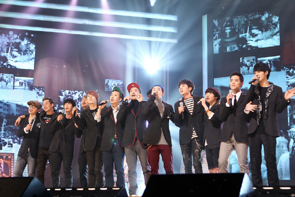 지난 10월26일 방송된 Mnet 세 번째 생방송에서 미션을 마친 뒤 합격자 발표 전에 다 함께 노래를 부르고 있는 참가자들. 자료제공 : Mnet