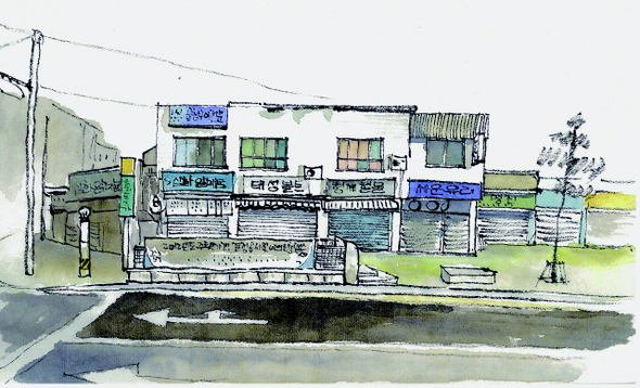 서울 중구 입정동의 가게 주인들은 여러 번 바뀌어도 건물들은 1950년쯤에 지은 당시 모습을 간직하고 있다. 2012년 여름에 그린 입정동 골목의 풍경. 임형남