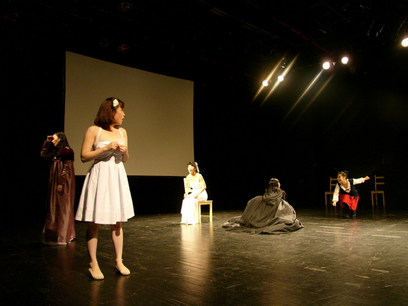 1층 전시장에서 본 홍성민의 <줄리엣>(Juliettttt)은 셰익스피어의 <로미오와 줄리엣>에서 줄리엣만 데려와 주문을 걸고 있는 작품이다. 2010년 서울의 한 극장에서 선보인 작업은 영상으로 기록됐고, 다시 사각형의 검은 전시장에서 상영되고 있었다. 작품 속에는 줄리엣이 5명 등장한다. 무대에서 ‘줄리엣’은 여주인공 한 명의 이름이 아니라, 자기가 줄리엣이라 우기는 다섯 명의 이름이다. 작가 홍성민은 다섯 명의 연극 배우를 다섯 연출가들에게 보냈고 훈련을 통해 제각각 다른 스타일의 줄리엣을 연기하게끔 했다.