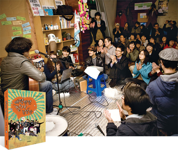 2010년 4월3일 두리반에서 열린 농성 100일 잔치 모습. 젊은 예술가들의 발랄한 연대는 두리반 농성을 승리로 이끈 원동력이었다. 실천문학사 제공