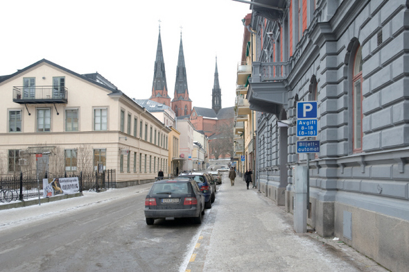스웨덴 웁살라의 거리를 걷노라면 자막 없는 흑백영화 속에 들어간 기분이었다. 멀리 웁살라 대성당이 보인다. 한겨레 자료
