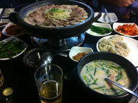 결국 대학 (술)친구 둘과 엑스가 추천한 ‘돈수백’엘 갔어. 분위기 좋 고 음식도 잘 나오더만. 우리는 수육 중짜에 만두를 시켰어. 엑스의 말처럼 수육을 시키면 돼지국밥 국물이 딸려나오더라구. 난 사실 감 기 기운이 있어서 술은 안 시켰어. 근데 갑자기 김미가 말했어. “왜? 소주에 밥 말아먹는 년이 술을 안 시키냐?” 야, 난 뭐 술 안 시키면 안 되냐, 내 얼굴에 소맥이라고 써 있냐? 넌 주문할 때 그럼 내 얼굴 들이밀며 “이것도 주세요~” 하냐? 술집 메뉴판에 내 얼굴 사진 붙 여놓지 왜? 손님들이 저거 주세요~ 하기 쉽게.