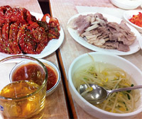 상경한 외손자를 보고자 한 어머니까지 모시고, 보쌈과 막국수로 유 명한 서울 가산동 춘천옥으로 향했다. 와잎은 보쌈 대자, 국밥, 소맥 을 주문했다. 시어머니 앞이면 뭐하겠노? 돼지고기에 소맥 한잔 묵 겠지. 소맥 먹으면 뭐하겠노? 입가심으로 막국수 한 그릇 하겠지.