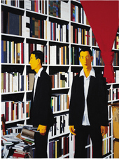 중국의 차세대 작가로 떠오르는 화가 관용 이 국내 첫 개인전 ‘아이러니-복제된 형상구 조 속 전복의 미학’을 열었다. 책으로 둘러싸 인 공간이 그림의 주요 소재다. 책이라는 이상 적 오브제와 그 사이를 부유하는 사람들이 상 징하는 현실의 대치를 표현했다. 요즘 화가가 집중하는 프랜시스 베이컨의 작업실을 모티 브로 한 그림도 전시했다. 베이컨은 단 한 번 도 청소하지 않은 작업실에서 그로테스크한 작품을 남긴 것으로 유명하다. 작업실 쓰레기 사이에서 작품이 만들어지기까지 잉여물들을 들여다봤다. 2월21일까지. 서울 삼성동 인터 알리아 아트스페이스. 문의 02-3479-0114.