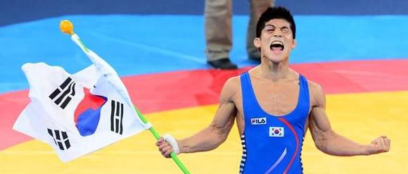 2012년 런던올림픽 레슬링 그레코로만형 66kg급에서 금메달을 딴 김현우 선수가 포효하는 모습. 국제올림픽위원회(IOC)가 고대 올림픽 종목인 레슬링을 퇴출시키기로 하는 ‘과감한’ 결정을 내려 논란이 일고 있다. 올림픽사진공동취재단