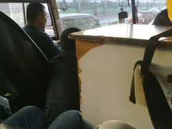 옌안행 ‘고급버스’에 탔는데 자리가 없다. 앞차를 갑자기 취소하더니 앞차 승객까지 한 버스에 몰아넣었다. 어이없다. 운전사가 합판으로 만든 사물함 비슷한 곳 뒤에 나를 앉혔다(사진). 다리가 안 펴진다. 5시간 동안 그러고 가란다. 나름 원칙은 있는지 나보고 안전벨트를 하란다. 바닥에 늘어진 벨트를 잡으니 끈적한 액체가 손에 묻어난다.